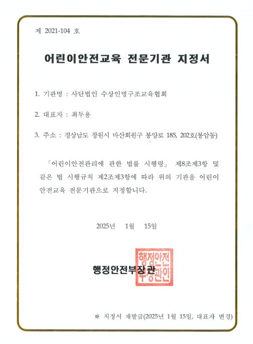 (사)수상인명구조교육협회 / 사업자등록번호: 609-82-18486 / 경상남도 창원시 마산회원구 봉양로185, 202호(봉암동,2층) / 전화: 055-551-9413 / 팩스: 055-552-9413 / 이메일: leaoffice@naver.com