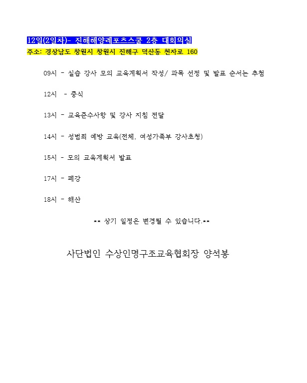 공지 2020 (사)수상인명구조교육협회 교육 세미나 개최 페이지 정보 작성자 관리자 댓글 0건 조회 4,064회 작성일 19-12-19 15:05 본문 여러분의 많은 참여 바랍니다. 목록 이전글사단법인 수상인명구조교육협회 임시이사회 개최 안내 19.12.20 다음글수험생 이벤트 19.10.29