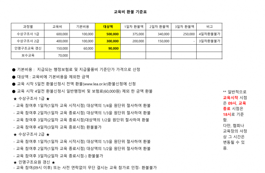 공지 2026년 교육비 환불기준표 페이지 정보 작성자 총무부 댓글 0건 조회 470회 작성일 26-01-27 16:55 본문 2026년 교육비 환불기준표 목록 이전글2026년『해양레포츠 자격증 취득 교육비 지원사업』 공고 26.02.20 다음글2026년 교육비인상 안내 26.01.27