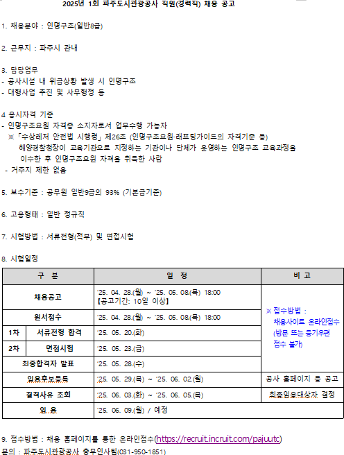 - 파주도시관광공사 채용공고-인명구조요원 1.hwp (52.5K) 28회 다운로드 | DATE : 2025-04-29 16:15:39