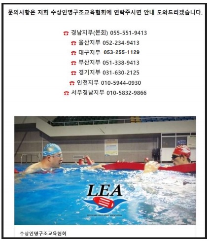 공지 수상인명구조교육협회 본회 및 지부 연락처