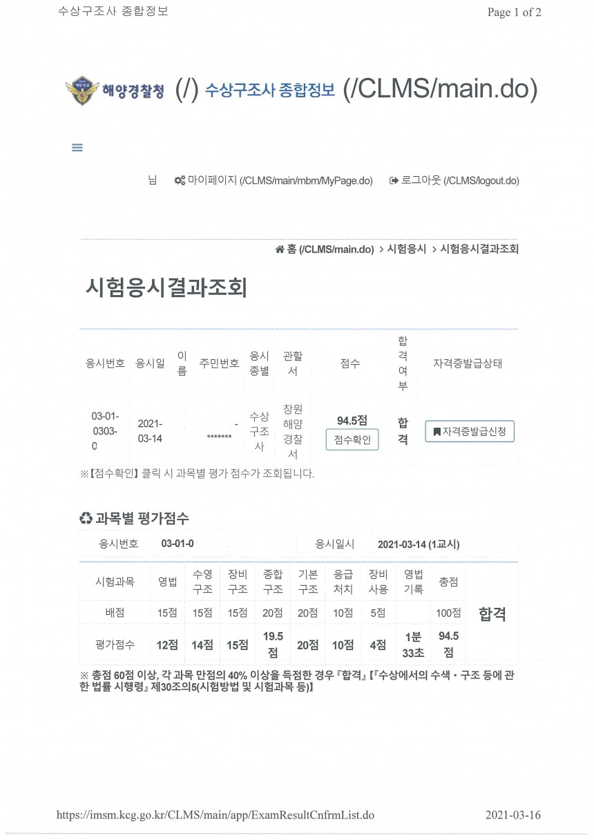 21년 03월 수구사 합격자 페이지 정보 작성자 총무부 댓글 0건 조회 3,266회 작성일 21-03-16 12:23 본문 수구사 응시자 목록 인쇄 이전글경남) 24년 5월 평일반(우리누리특별반) 24.05.22 다음글22회차 수상구조사 사전교육 사진 19.08.13